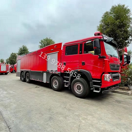 豪沃T5G8噸泡沫消防車圖片_高品質(zhì)_哪里賣,是一種設(shè)計制造成適宜消防隊員乘用、裝備各類消防器材..